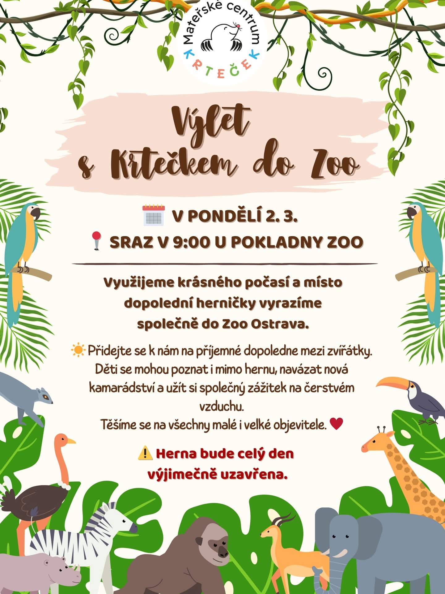 👉 Srdečně zveme všechny – přijďte se k nám přidat a užijme si společný den v zoo.